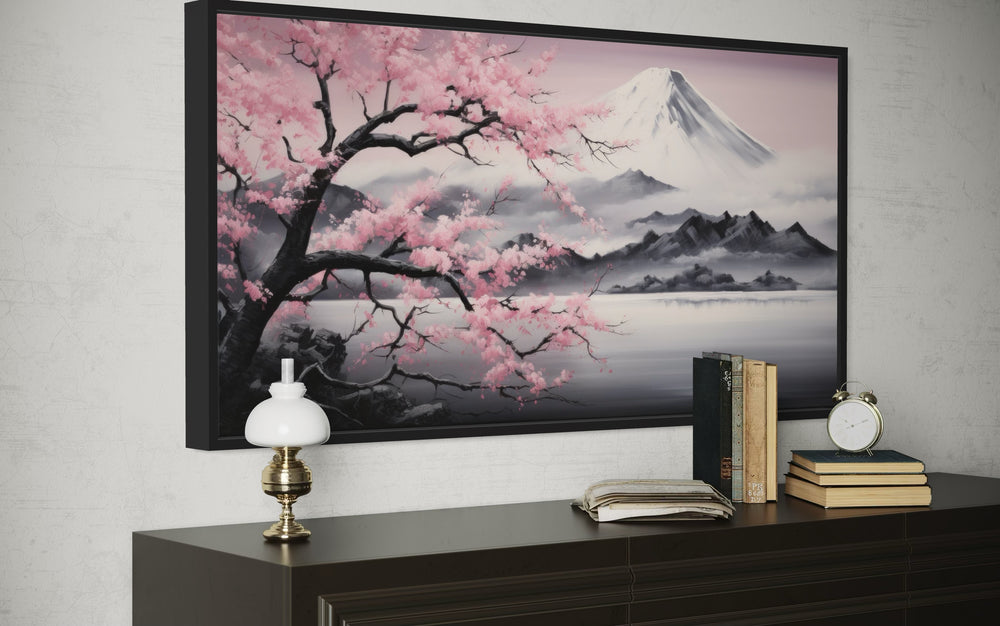 Cette toile murale représentant le mont Fuji et des fleurs de cerisier roses est idéale pour les espaces qui embrassent le calme, l'élégance et les influences culturelles. Parfaite pour les intérieurs contemporains ou minimalistes, elle ajoute une touche raffinée aux chambres, aux salons ou aux espaces de méditation. La scène tranquille se marie à merveille avec des meubles clairs ou neutres, créant un environnement harmonieux et serein. Sa disposition horizontale en fait une pièce remarquable au-dessus des lits, des canapés ou des longues consoles. Pour les amateurs de culture japonaise ou de décoration inspirée de la nature, cette œuvre d'art murale constitue un ajout significatif et intemporel. L'ambiance paisible de la scène en fait un cadeau ou une pièce maîtresse parfaite pour ceux qui apprécient les beaux-arts. Qu'elle rehausse une retraite tranquille ou qu'elle complète une esthétique moderne, cette œuvre d'art allie beauté et sophistication sans effort. Complétez votre décor avec cette toile murale représentant le mont Fuji et ses fleurs de cerisier.