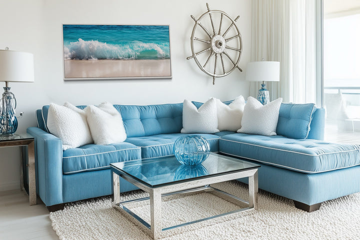 La palette de couleurs de cette décoration murale représentant des vagues de l'océan présente un mélange vif de bleus profonds, d'aquas lumineux et de blancs éclatants. Ces couleurs capturent l'essence de l'océan, apportant son énergie dynamique et sa sensation rafraîchissante dans votre maison. Les bleus profonds reflètent la profondeur et la puissance de la mer, tandis que les aquas lumineux mettent en valeur la crête de la vague et la lumière du soleil filtrant à travers l'eau. Les blancs éclatants ajoutent une impression de mouvement et de réalisme, imitant l'écume de la mer lorsque la vague s'écrase. Cette palette de couleurs saisissante garantit que l'œuvre d'art se démarque, faisant une déclaration audacieuse dans n'importe quelle pièce. Les teintes riches et vives créent une expérience visuelle captivante, évoquant le frisson et la beauté de l'océan.