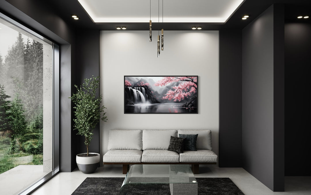 Ce tableau représentant une cascade de cerisiers en fleurs est idéal pour créer une atmosphère sereine et élégante dans n'importe quelle pièce. Parfait pour les chambres, les salons ou les espaces de méditation, il imprègne les intérieurs de l'essence apaisante de la nature. Son design intemporel complète facilement l'esthétique d'inspiration asiatique, minimaliste et moderne. Affichez-le au-dessus d'un lit, d'un canapé ou d'une cheminée pour créer un point focal époustouflant qui respire la paix et la sophistication. Les couleurs sobres lui permettent de s'harmoniser avec des meubles doux, des bois clairs et des tons neutres. Pour un look d'inspiration zen, associez-le à un décor en bambou, des textiles aérés ou de la verdure pour créer une retraite tranquille. Cette œuvre d'art polyvalente fonctionne également à merveille dans les espaces d'étude ou les coins de lecture, favorisant un sentiment de concentration calme. Complétez votre maison avec cette décoration murale en cascade rose-gris, un mélange parfait d'élégance et de tranquillité.