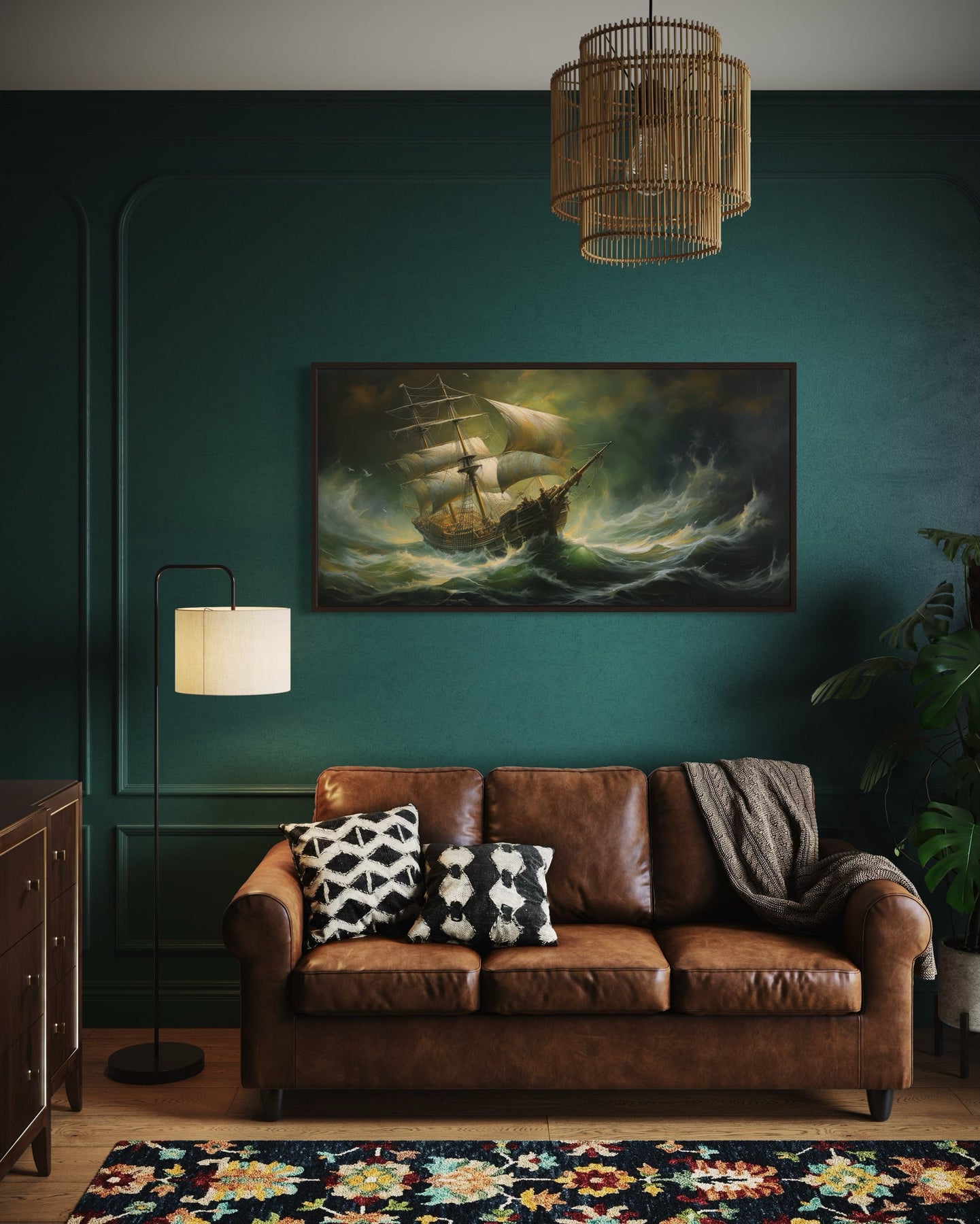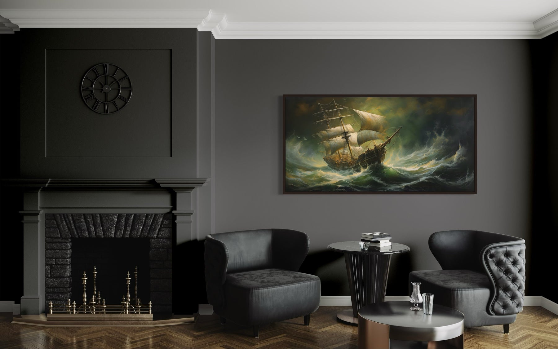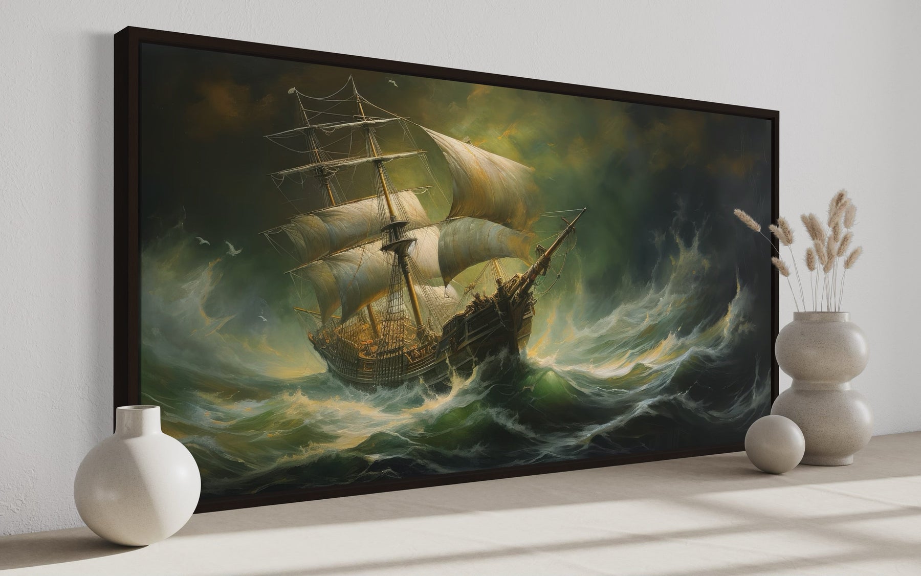 Pirate Ship Wall Art – Nautical Canvas Print | Stormy Sea Painting Decor