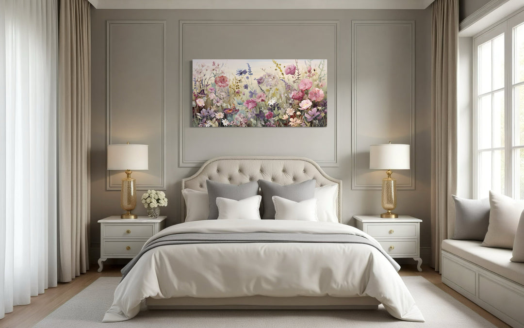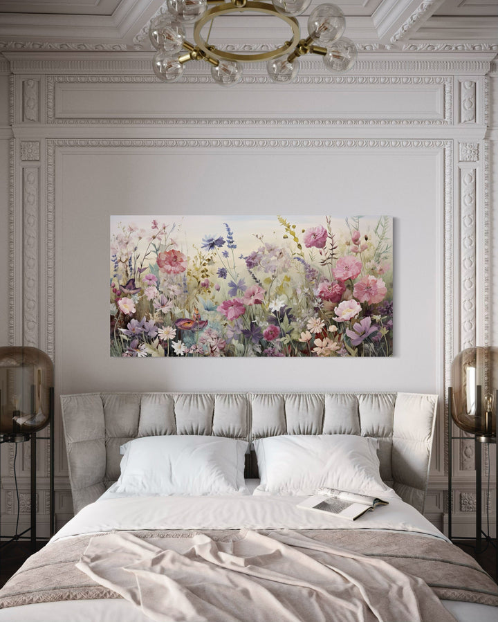 Cette décoration murale de prairie de fleurs sauvages violettes est idéale pour les maisons qui adoptent une esthétique rustique, de ferme ou inspirée de la nature. Ses tons apaisants et ses détails délicats en font une pièce maîtresse parfaite pour les chambres, ajoutant un point focal apaisant au-dessus du lit. Dans les salons, elle se marie à merveille avec des meubles en bois naturel, des textiles doux et des tons neutres, rehaussant l'ambiance chaleureuse de l'espace. Pour les salles à manger ou les vérandas, l'imagerie sereine de l'œuvre d'art apporte une touche d'extérieur à l'intérieur, créant une atmosphère accueillante. Son design polyvalent convient également aux espaces modernes à la recherche d'une touche naturelle et élégante. Qu'elle soit exposée dans un couloir, une entrée ou dans le cadre d'un mur de galerie, cette pièce ajoute de la profondeur et du charme à votre décor. Complétez votre maison avec cette décoration murale de prairie de fleurs sauvages violettes, un hommage intemporel à la beauté de la nature.