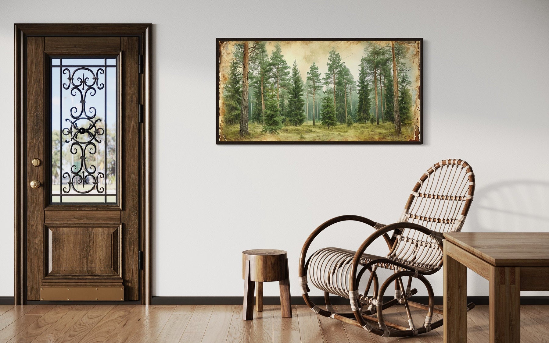 Décoration murale rustique avec sapins - Toile encadrée représentant une forêt | Décoration murale style ferme