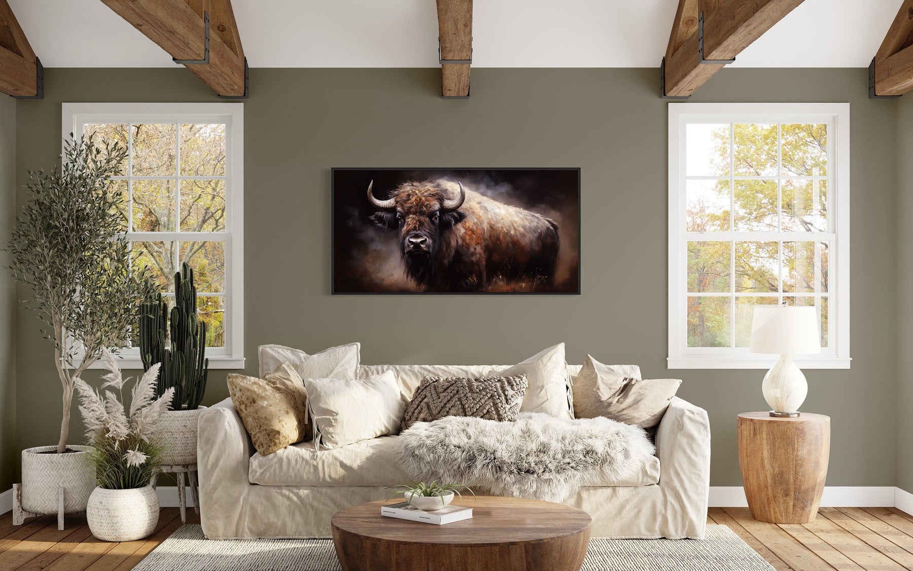 American Buffalo Wall Art - Extra Large Framed Canvas Print | Rustic Living Room Decor