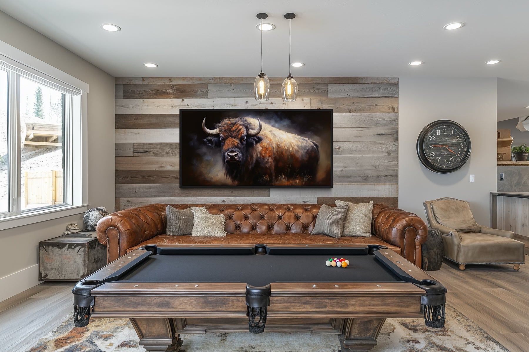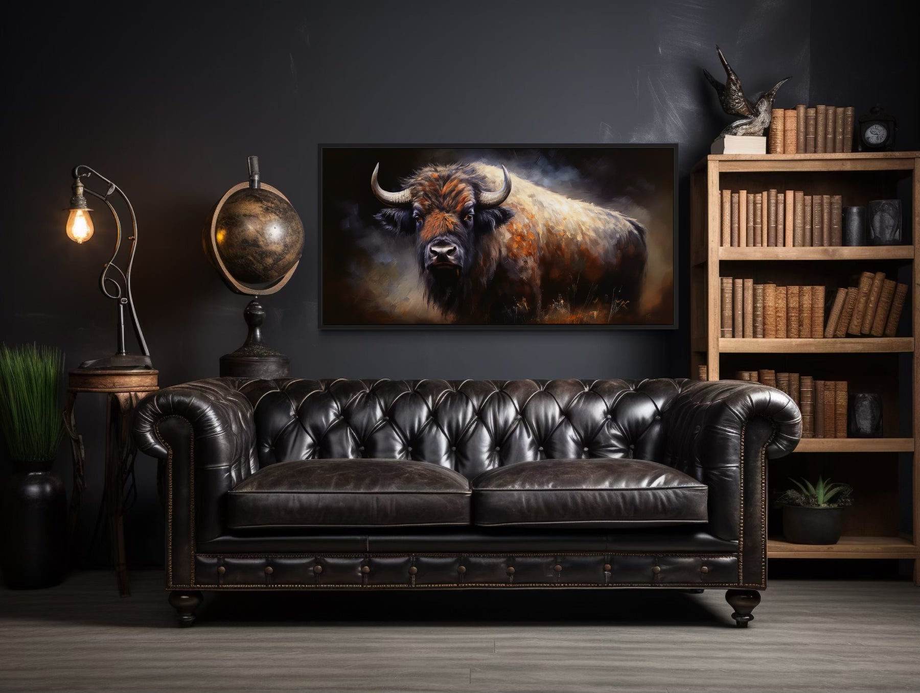 This American buffalo wall decor is ideal for homes that embrace rustic charm, masculine energy, or nature-inspired aesthetics. Its large format makes it a perfect fit for man caves, where it adds a bold and commanding presence. In living rooms or dens, it pairs beautifully with leather sofas, wooden accents, and earthy tones, creating a cozy yet sophisticated ambiance. For cabins or lodge-inspired interiors, it enhances the rugged, natural feel with its striking depiction of wildlife. Its timeless design also suits contemporary spaces that seek a statement piece rooted in heritage and strength. This artwork makes a thoughtful gift for wildlife enthusiasts or anyone who appreciates the beauty of the American West. Complete your home decor with this American buffalo wall art, a powerful tribute to one of nature’s most majestic creatures.