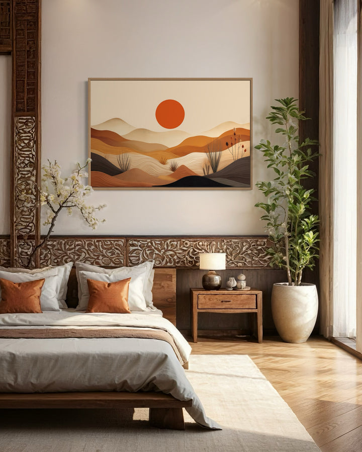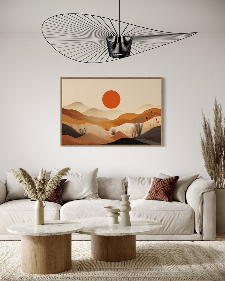 This Arizona desert boho canvas wall art is an ideal choice for southwestern, bohemian, or minimalist home styles. It adds a calming presence to living rooms, making it perfect for creating a cozy yet elegant focal point. The tranquil desert tones make it a natural fit for bedrooms, fostering a peaceful retreat atmosphere. In dining areas, the artwork enhances a warm and inviting space for gatherings. Its modern design also complements office or study decor, offering a sophisticated yet laid-back vibe. Pair it with textured rugs, woven baskets, or wood accents for a cohesive boho-inspired look. The versatility of the design makes it suitable for various settings while maintaining its unique charm. Let the Arizona desert boho wall art transform your home into a serene oasis with its captivating desert aesthetic.