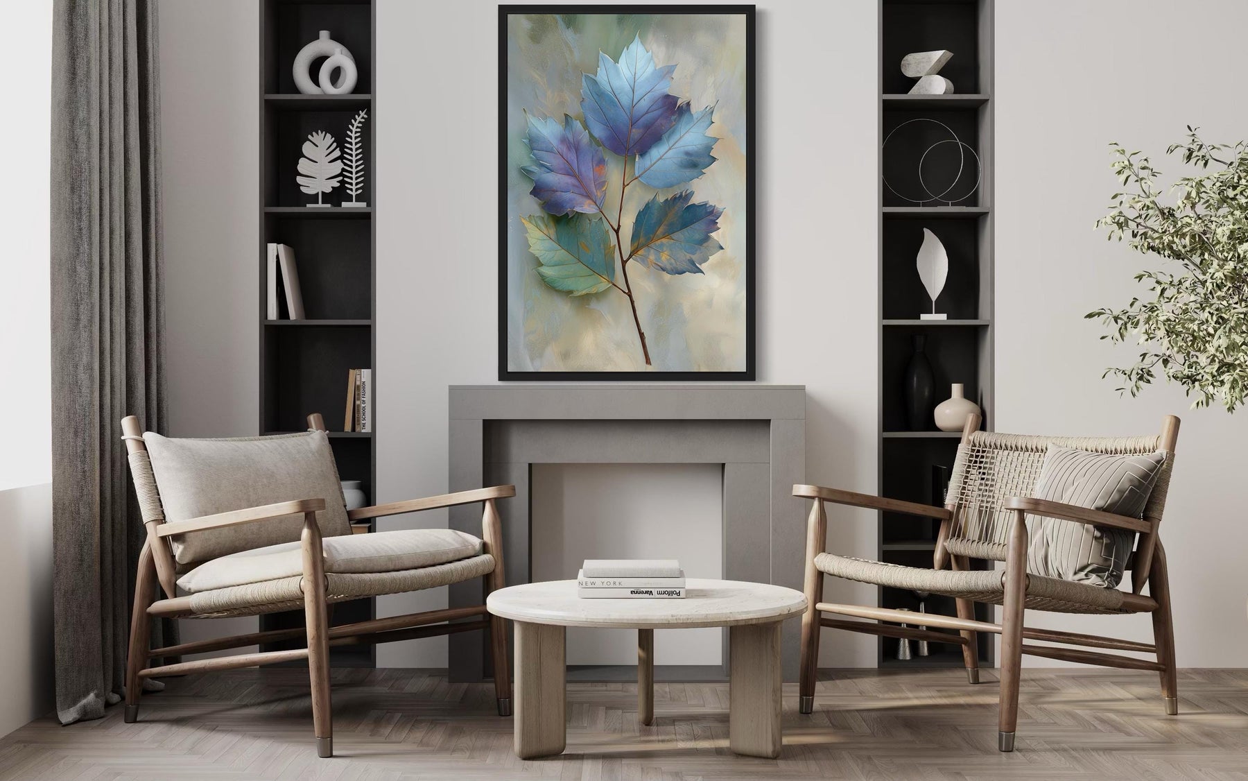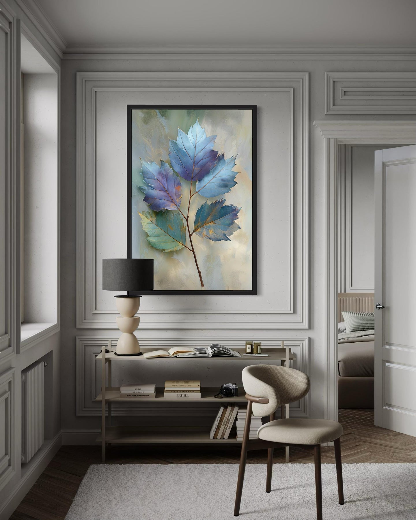 This Autumn Blue Leaf Botanical canvas wall art is ideal for modern living rooms and serene bedrooms that celebrate nature and understated elegance. In a modern living room, its soothing blues and natural leaf forms bring a refreshing, organic focal point that harmonizes with minimalist furniture and neutral palettes. Bedrooms benefit from its calm, cool tones, which create a relaxing atmosphere perfect for unwinding after a busy day. The large vertical proportions let it shine as a standalone feature above a sofa, bed, or console table. Complementing both light and dark interiors, it integrates effortlessly with wooden textures, stone accents, or sleek metallics. Its subtle seasonal theme ensures it remains stylish well beyond autumn, offering year-round natural beauty. Ready-to-hang construction makes it easy to display, while durable canvas guarantees long-lasting visual appeal. Whether used as the main attraction or part of a botanical gallery wall, it enriches spaces with tranquil energy. Guests will admire its delicate detailing and refreshing take on autumn colors. With timeless elegance and nature-inspired sophistication, our Autumn Blue Leaf Botanical wall decor completes peaceful interiors with enduring charm.
