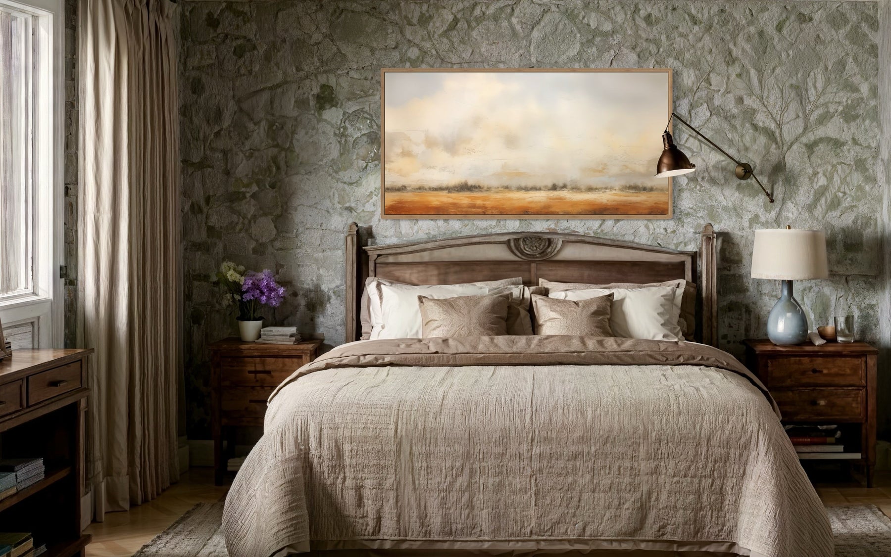 Embrace the tranquility of the countryside with this minimalist farm field painting canvas print, a perfect addition to any home seeking a touch of rustic elegance. This artwork captures the serene beauty of open fields with a simple, yet evocative depiction of a vast landscape bathed in soft, neutral tones. The minimalist approach allows the viewer to appreciate the subtle details of the landscape, creating a calming and peaceful ambiance in any room. Ideal for farmhouse-inspired interiors or those who appreciate a vintage, neutral aesthetic, this wall art offers a sophisticated touch that enhances the warmth and charm of your space. Whether placed in a living room, bedroom, or hallway, this canvas print brings the timeless beauty of nature indoors, creating a serene focal point that invites relaxation and reflection. Let this minimalist farm field painting elevate your decor with its understated elegance and soothing presence.