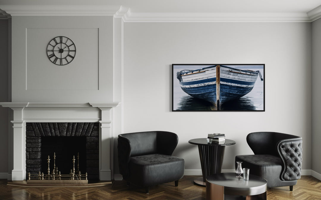 Our navy blue and white boat painting is a captivating piece that infuses nautical charm and timeless appeal into your home decor. This framed canvas wall art showcases an old boat rendered in stunning detail, blending navy blue and crisp white hues that evoke calmness and adventure. Printed on high-quality canvas, this artwork ensures vibrant colors and enduring durability, making it a lasting addition to any space. Ideal for coastal, maritime, or rustic-inspired interiors, this piece adds a touch of serenity and history to your room. Its balanced design makes it suitable for a variety of settings, including living rooms, bedrooms, or hallways. Whether you're drawn to the tranquility of the sea or appreciate fine craftsmanship, this painting brings sophistication and grace to your walls. Complete your decor with this striking navy blue and white boat painting.