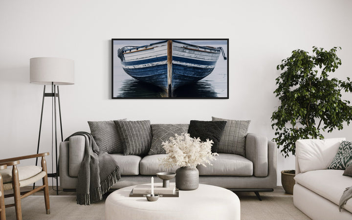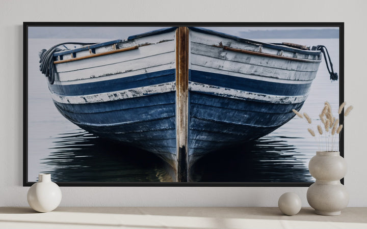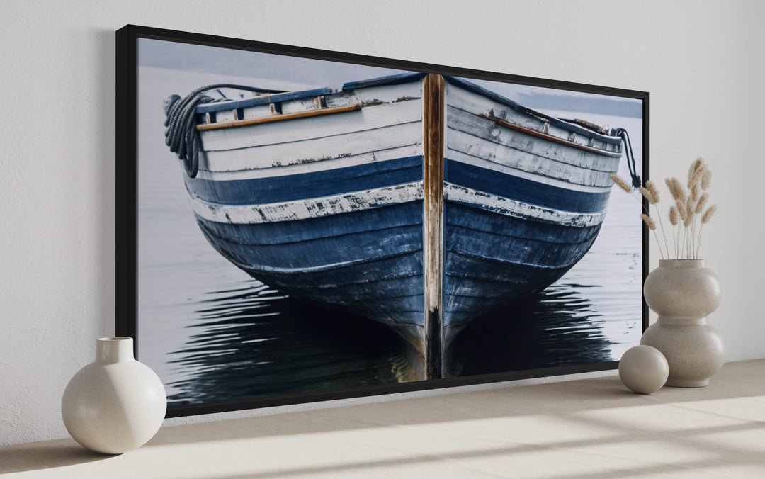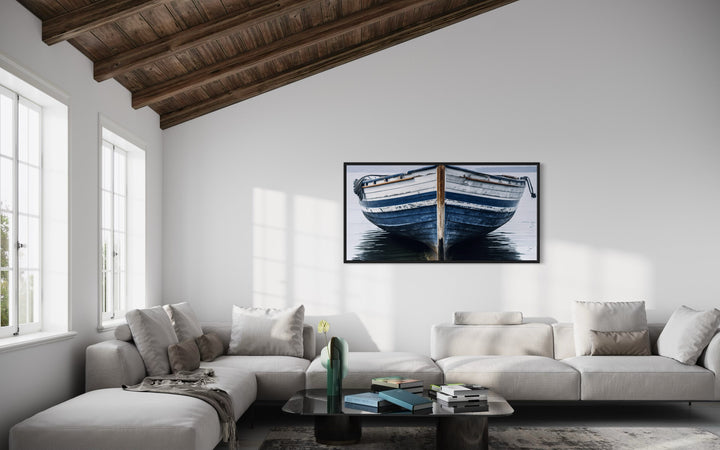 Navy Blue White Old Boat Painting Framed Canvas Wall Art