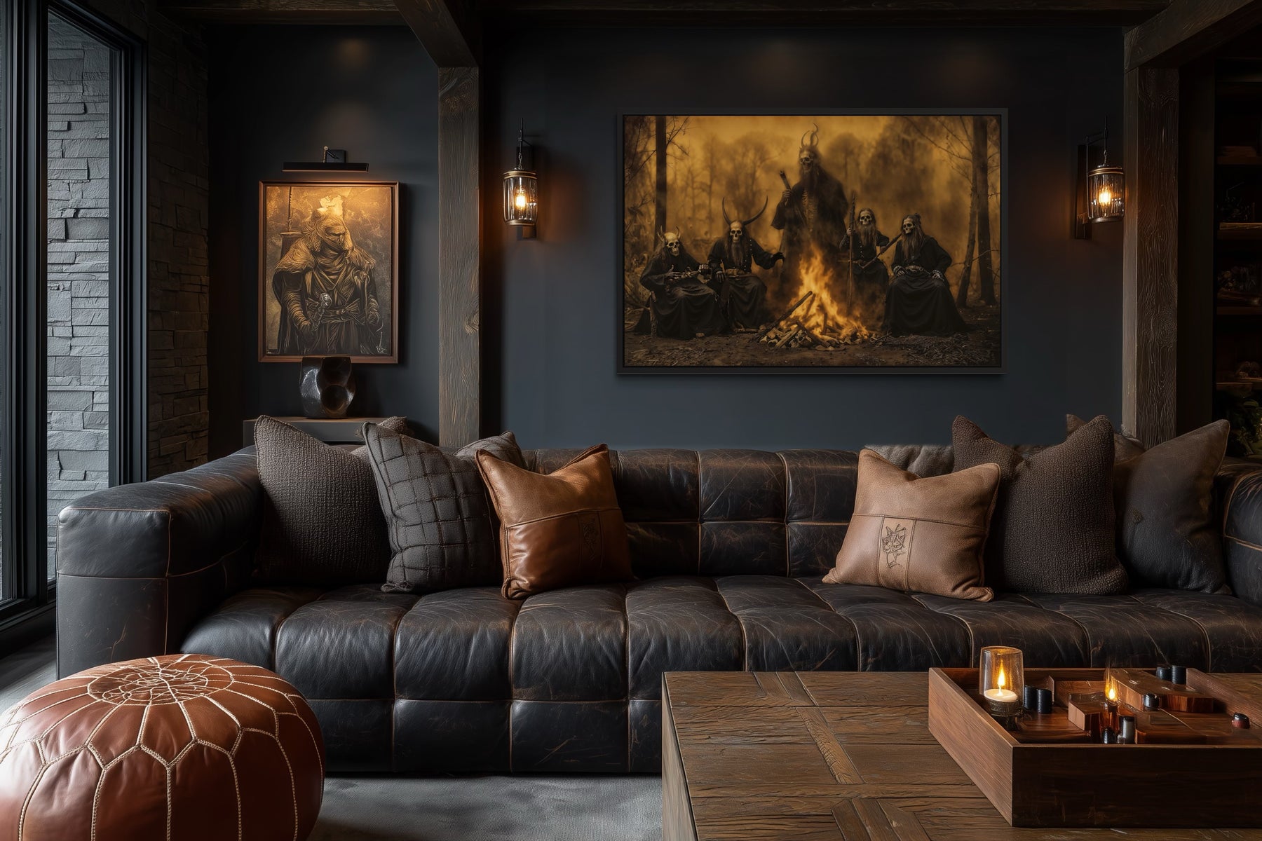 This satanic ceremony canvas wall art is the perfect addition for those looking to embrace a darker, more gothic aesthetic in their home. The piece is masterfully crafted to evoke a sense of ritual and mystique, capturing the essence of a satanic ceremony in vivid detail. The artwork has a rustic yet modern feel, blending the timeless appeal of old-world practices with contemporary design elements. Each brushstroke brings the scene to life, immersing the viewer in a world where shadows and light dance in harmony. The painting's aura is hauntingly beautiful, making it an ideal focal point for Halloween decor or any gothic-themed space. This satanic ceremony wall decor will undoubtedly intrigue and captivate anyone who lays eyes on it, making it a conversation starter in any room.