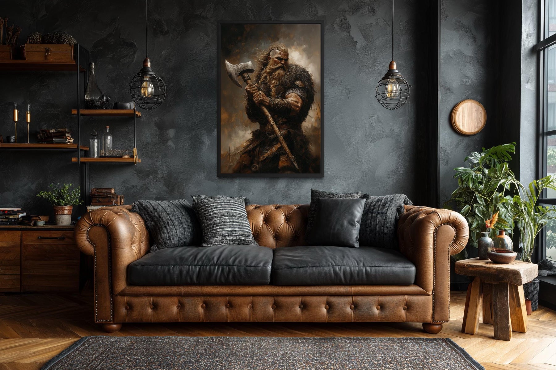 Viking Warrior Wall Art – Norse Warrior Painting With Battle Axe | Masculine Decor For Men