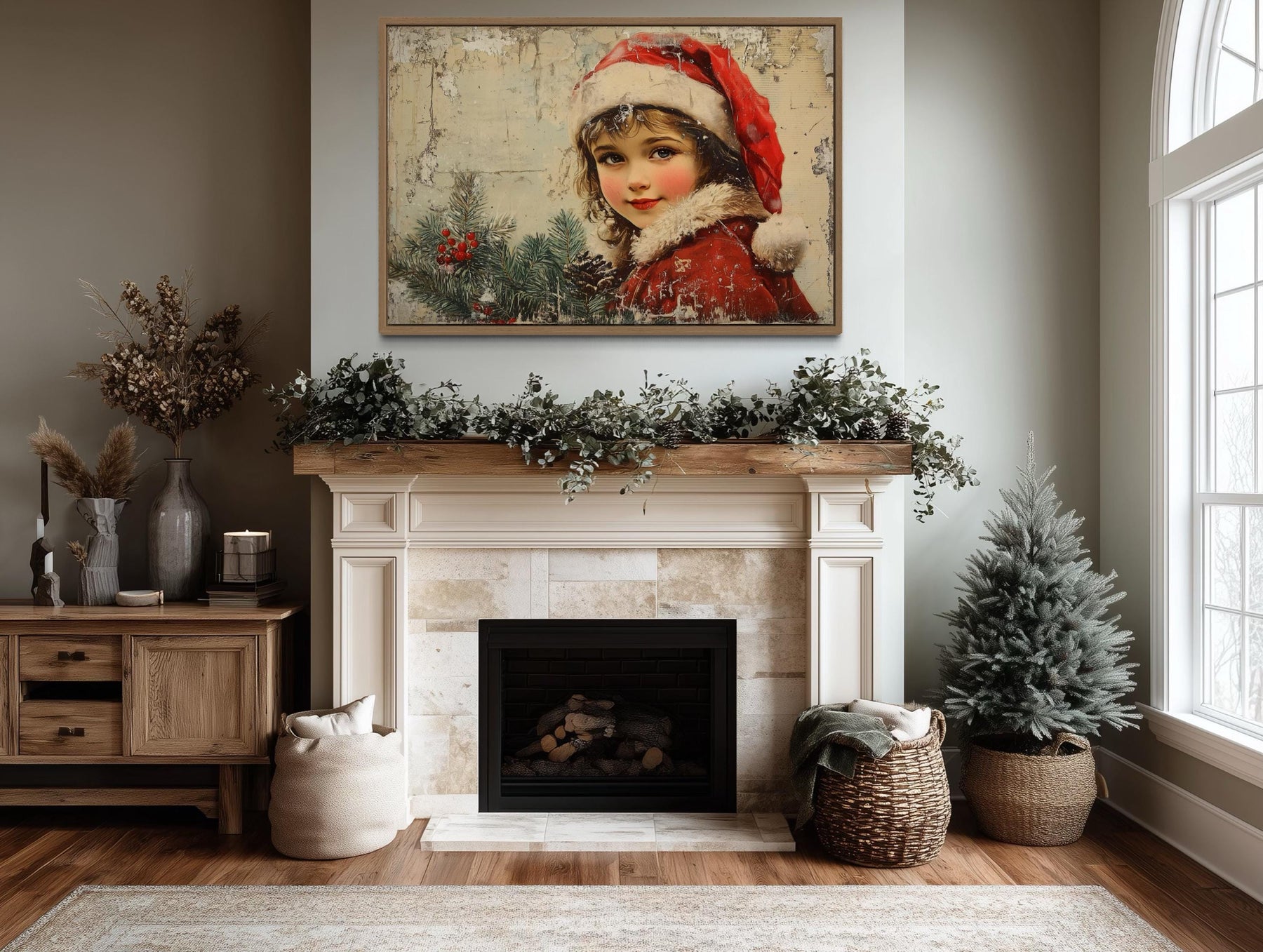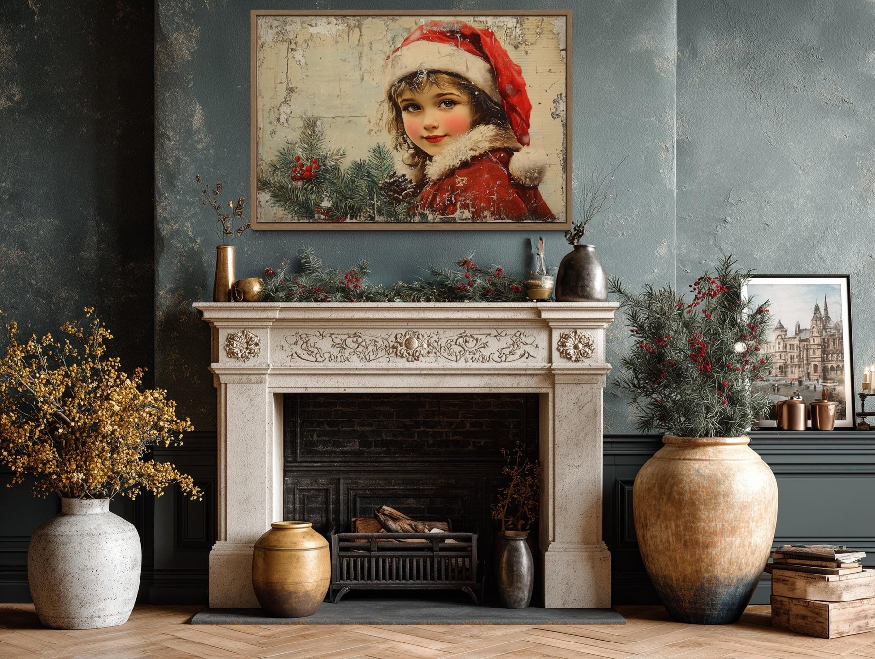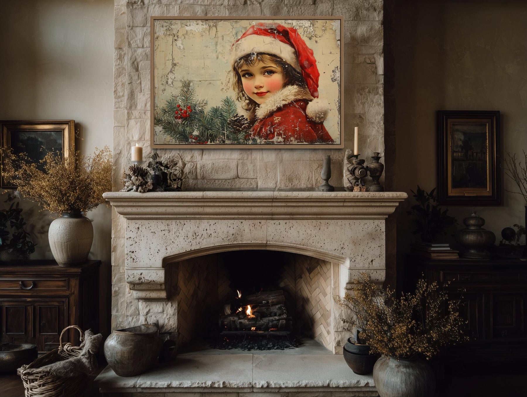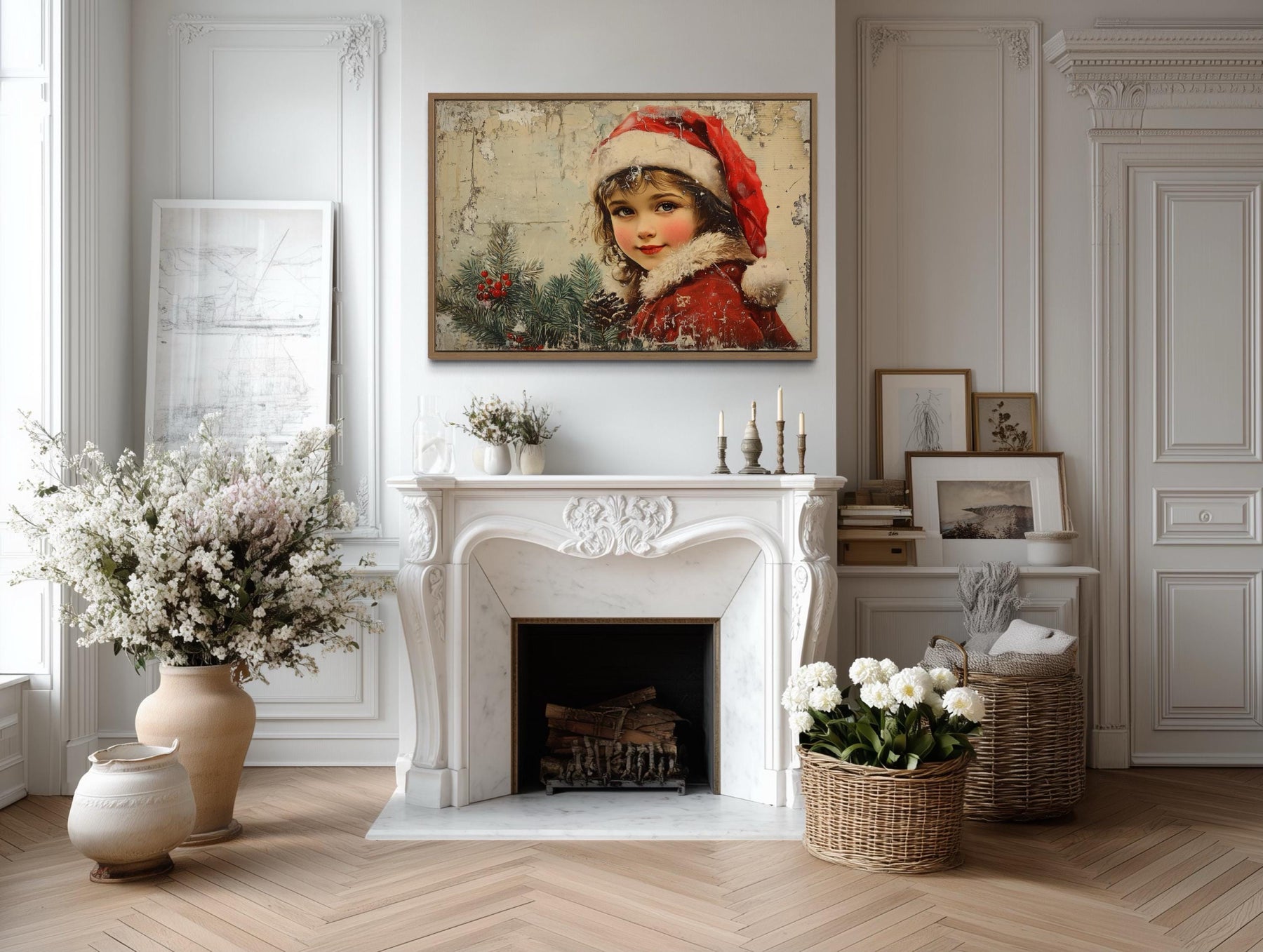 This Vintage Christmas Girl in Red Santa Hat canvas print is ideal for farmhouse interiors and homes decorated with traditional holiday charm. In a farmhouse living room, it pairs beautifully with natural wood beams, rustic fireplaces, and soft plaid blankets, setting a cozy scene for winter gatherings. Hung above a mantel, it complements evergreen garlands, twinkling lights, and heirloom stockings, welcoming guests with cheerful warmth. For homes that treasure classic Christmas traditions, it matches antique ornaments, vintage sleigh bells, and hand-crafted wreaths, creating a festive focal point that never goes out of style. The vintage postcard feel of this artwork appeals to collectors and those who appreciate the elegance of old-world holiday décor. Even in modern farmhouse settings, its gentle colors and nostalgic subject soften clean lines and add heartfelt seasonal beauty. Whether showcased in an inviting entryway or highlighted in a dining room where holiday meals are shared, it brings a timeless message of joy. Every glance at the radiant smile and bright red hat evokes fond memories of childhood Christmases and family celebrations. The Vintage Christmas Girl in Red Santa Hat wall art completes any holiday home with lasting charm, tradition, and classic festive spirit.