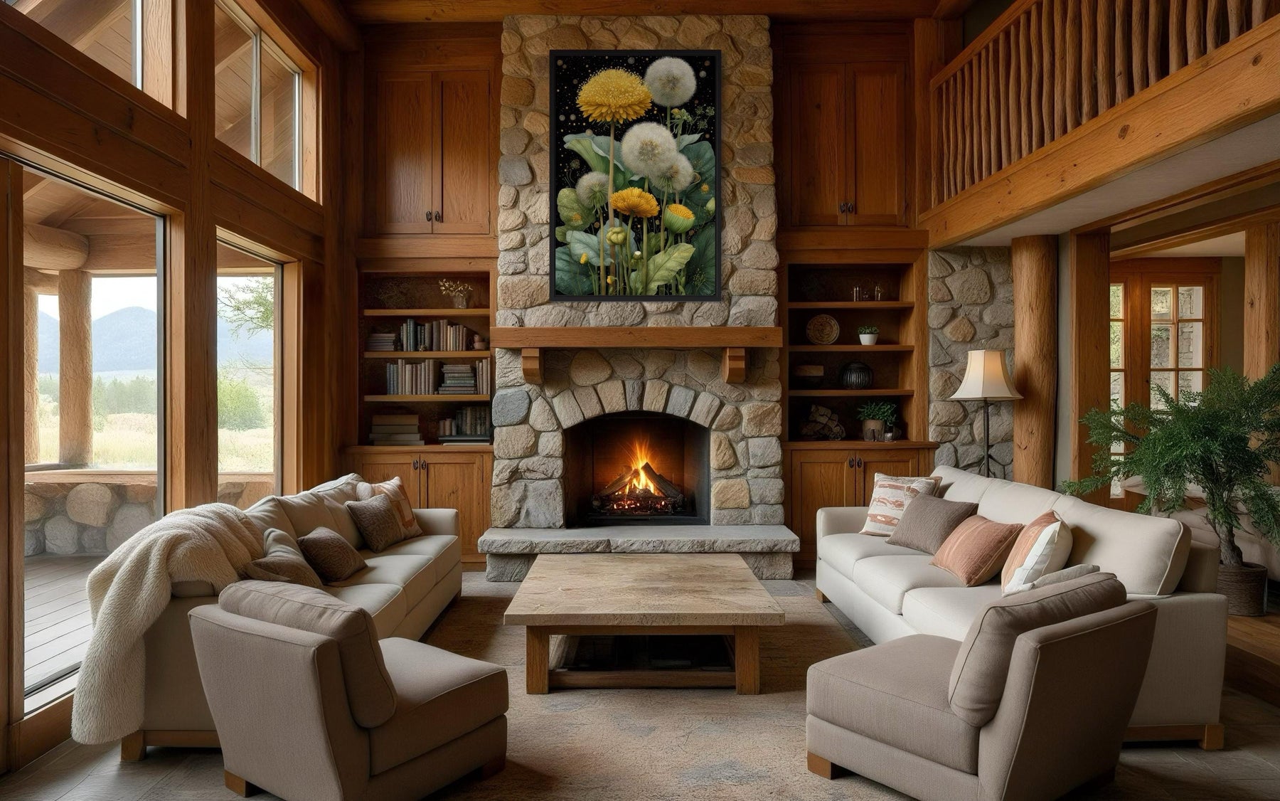 The Yellow Dandelion On Black Background wall art is ideally suited for modern living rooms or contemporary dining spaces where bold color contrasts and natural motifs define the décor. In a modern living room, it pairs beautifully with clean-lined furniture and neutral tones, letting the golden blooms provide an artful burst of warmth. In a contemporary dining area, it creates a striking focal point that elevates mealtime ambiance and conversation. The vertical format fits elegantly on accent walls, narrow niches, or alongside shelving, adding height and visual drama. Its combination of vivid botanical subject and minimalist black backdrop complements metal accents, polished woods, and soft textiles alike. Whether chosen for its symbolic meaning or purely for its beauty, the Yellow Dandelion painting infuses interiors with uplifting energy and refined style. Crafted on premium canvas and ready to hang, it promises lasting brilliance and easy integration into modern or transitional spaces. This artwork suits anyone seeking a sophisticated botanical piece that feels both timeless and fresh. Ending with radiant simplicity, the Yellow Dandelion On Black Background Botanical canvas wall art brings enduring natural elegance to any home.